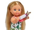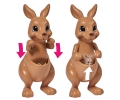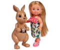 Evi ha incontrato mamma Canguro! Ma ehi! C'è una sorpresa! Abbassa le zampe anteriori di mamma Canguro e scopri il cucciolo nel suo marsupio! Evi ha un biberon per dargli da mangiare. Evi indossa un simpatico vestito con motivi tropicali.