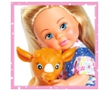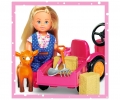 Evi è al lavoro in fattoria con il suo trattore! Insieme a lei c'è una simpatica capretta! Evi indossa una salopette blu con pois bianchi, una maglietta a fiori e gli stivali di gomma. Il trattore è dotato di rimorchio removibile. Incluso il fieno, la pala e il forcone.