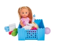 Nella confezione trovi Steffi ed Evi insieme a un cane e al suo piccolo e la cuccia, una cesta e tanti accessori; oppure Steffi ed Evi insieme ai coniglietti, il loro recinto e tanti accessori.